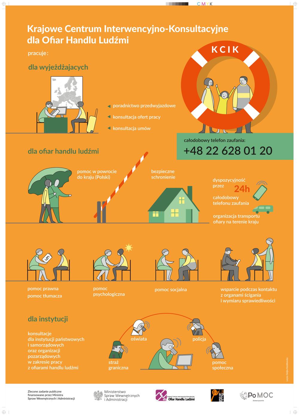 Centrum Interwencyjno-Konsultacyjne oferuje bezpłatną, całodobową pomoc dla osób zagrożonych i pokrzywdzonych handlem ludźmi.